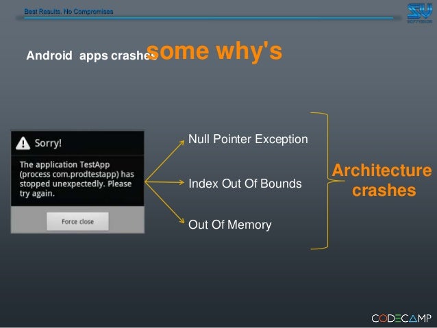 Apps Crashing On Android : Iasi code camp 20 april 2013 android apps crashes why how - Issues that are quite debilitating for the user experience are many, but what's worst than apps crashing left and right or even system and system.